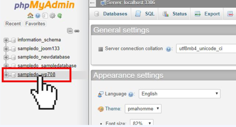 Step 3: On the phpMyAdmin interface, you will see a list of your databases on the left panel. Click on the database you want to manage