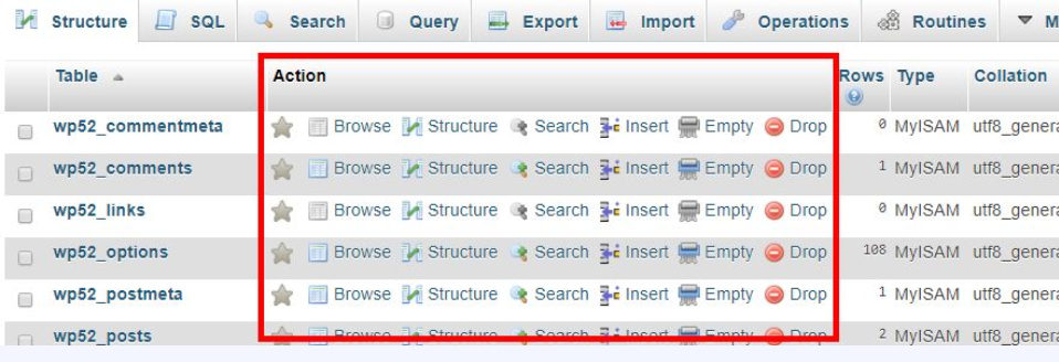 Empty – The Empty action allows you to empty your database table, removing the data and keeping the empty table.